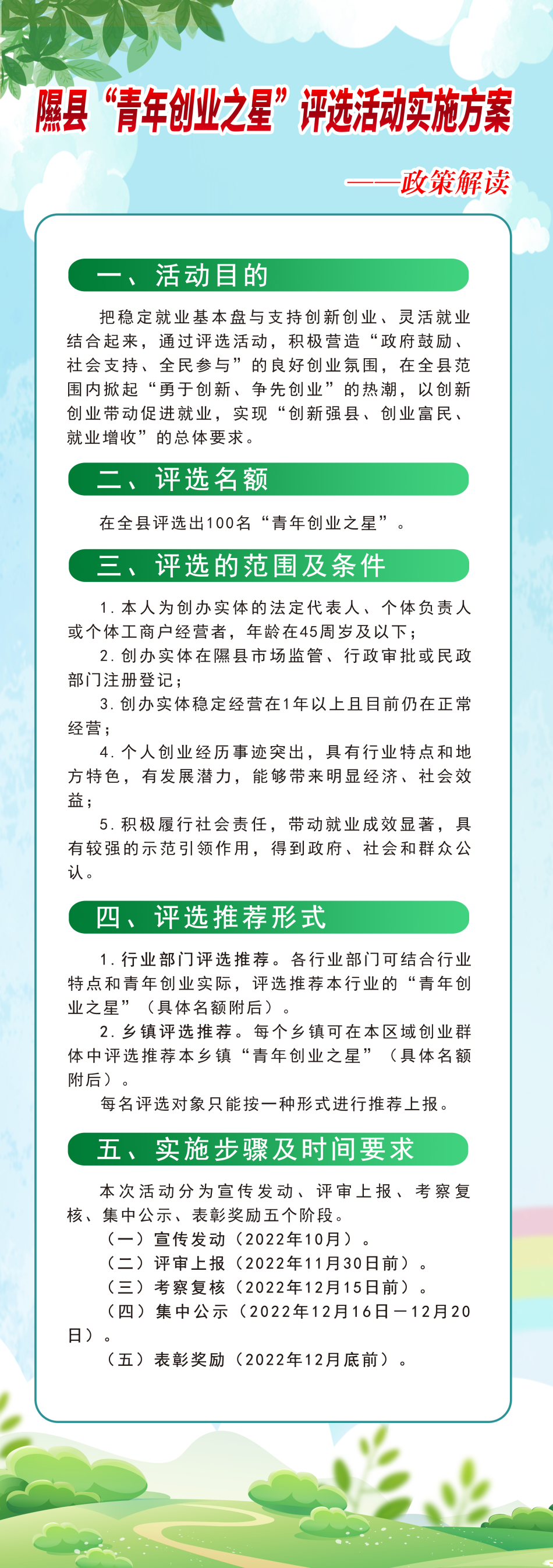 【图解】隰县人民政府办公室关于印发《隰县“青年创业之星”评选活动实施方案》的通知