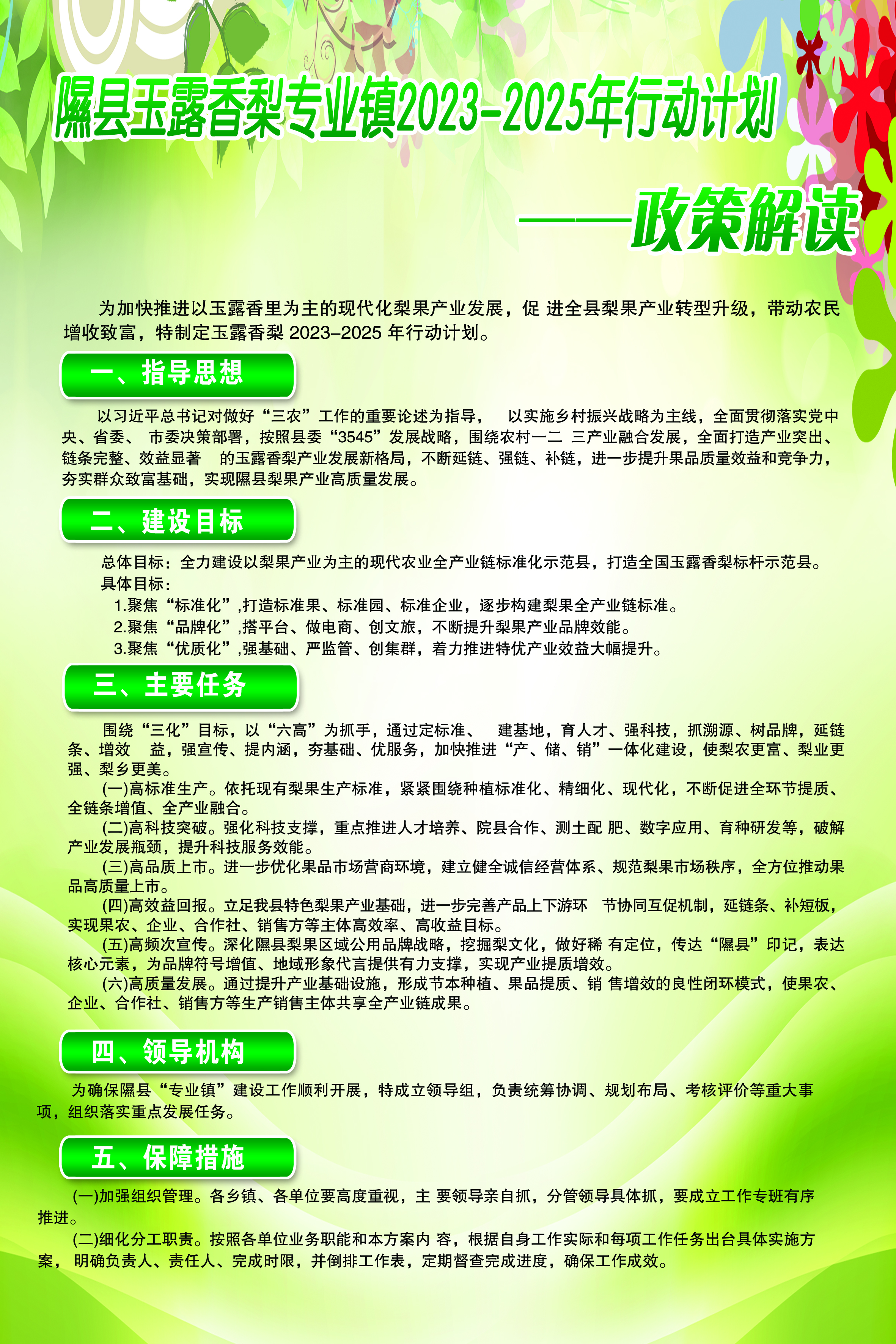【图解】隰县人民政府办公室关于印发隰县玉露香梨专业镇2023-2025年行动计划的通知